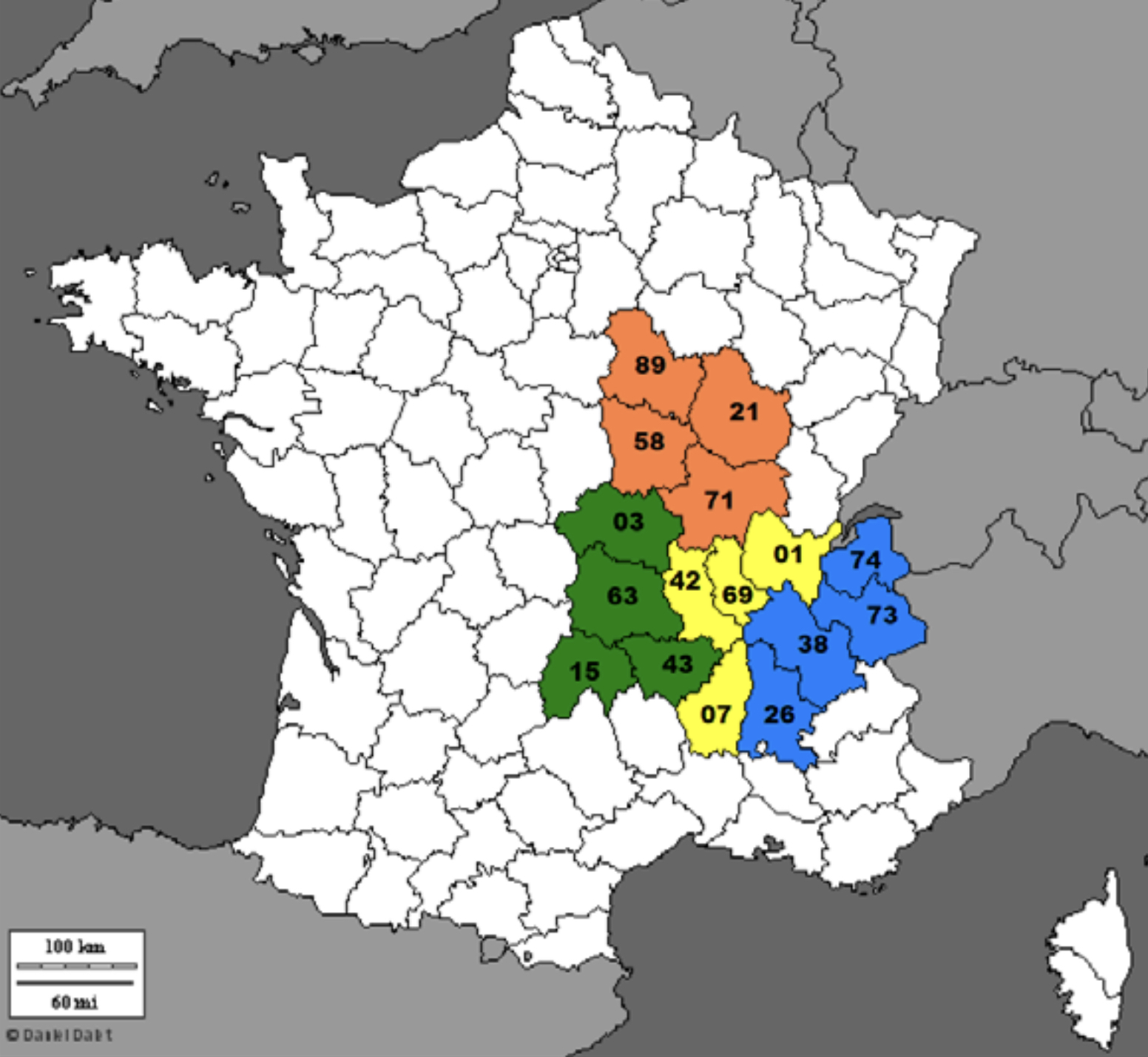 Carte du ressort de la Cour Administrative d'Appel de Lyon et des 4 Tribunaux Administratifs de son ressort (Clermont-Ferrand, Dijon, Grenoble et Lyon : soit une couverture de 16 départements) TA Clermont-Ferrand : Allier (03) – Cantal (15) – Haute-Loire (43) Puy de Dôme (63) TA Dijon : Côte d’Or (21) – Nièvre (58) – Saône et Loire (71) – Yonne (89) TA Grenoble : Drôme (26) – Isère (38) – Savoie (73) – Haute-Savoie (74) TA Lyon : Ain (01) – Ardèche (07) – Loire (42) – Rhône (69)